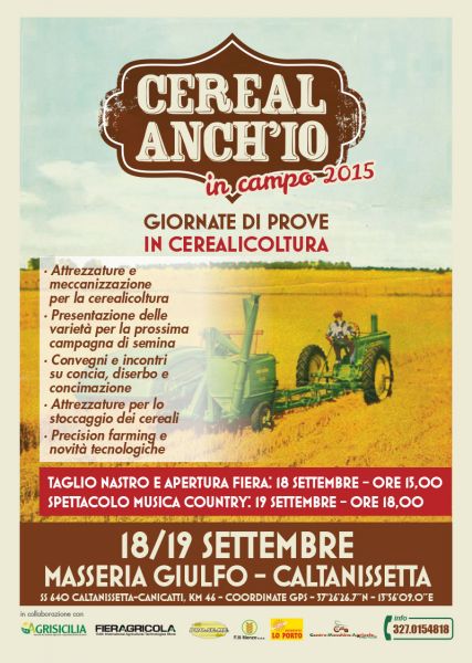 I prossimi 18 e 19 settembre, nel cuore della Sicilia, presso la masseria Giulfo, nei pressi di Caltanissetta i cerealicoltoltori siciliani potranno contare su un importante evento sulla cerealicoltura con una due giorni che prevede tra l'altro prove in campo di trattori e seminatrici, presentazione di nuove varietà di cereali e le più moderne soluzioni in tema di concimazione, concia e diserbo. La manifestazione prevede anche attività convegnistiche riguardanti le varietà di cereali ed il miglioramento genetico. Inoltre sarà presentato un incontro sulla filiera di orzo per la produzione di birra locale. A tale riguardo la SOPAT n. 47 di Valguarnera dell'Ente di Sviluppo Agricolo presenterà gli ultimi risultati sul progetto sulla filiera siciliana dell'orzo da birra.
